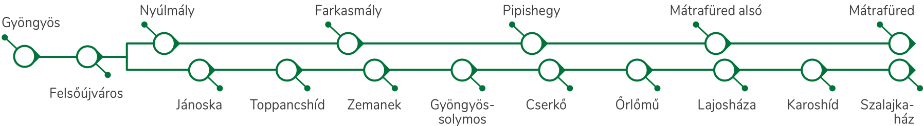 A Mátravasút kisvasúti járatai két vonalon is szállítják az utasokat a gyöngyösi Orczy-kastély parkjának szélétől a népszerű Mátrafüred és a vadregényes Szalajkaház felé. A vasút két vonala az első kilométeren még közös pályán halad, az elágazás után pedig mindkét meredeken emelkedő sínpáron gyorsan magunk mögött hagyhatjuk a város zaját.