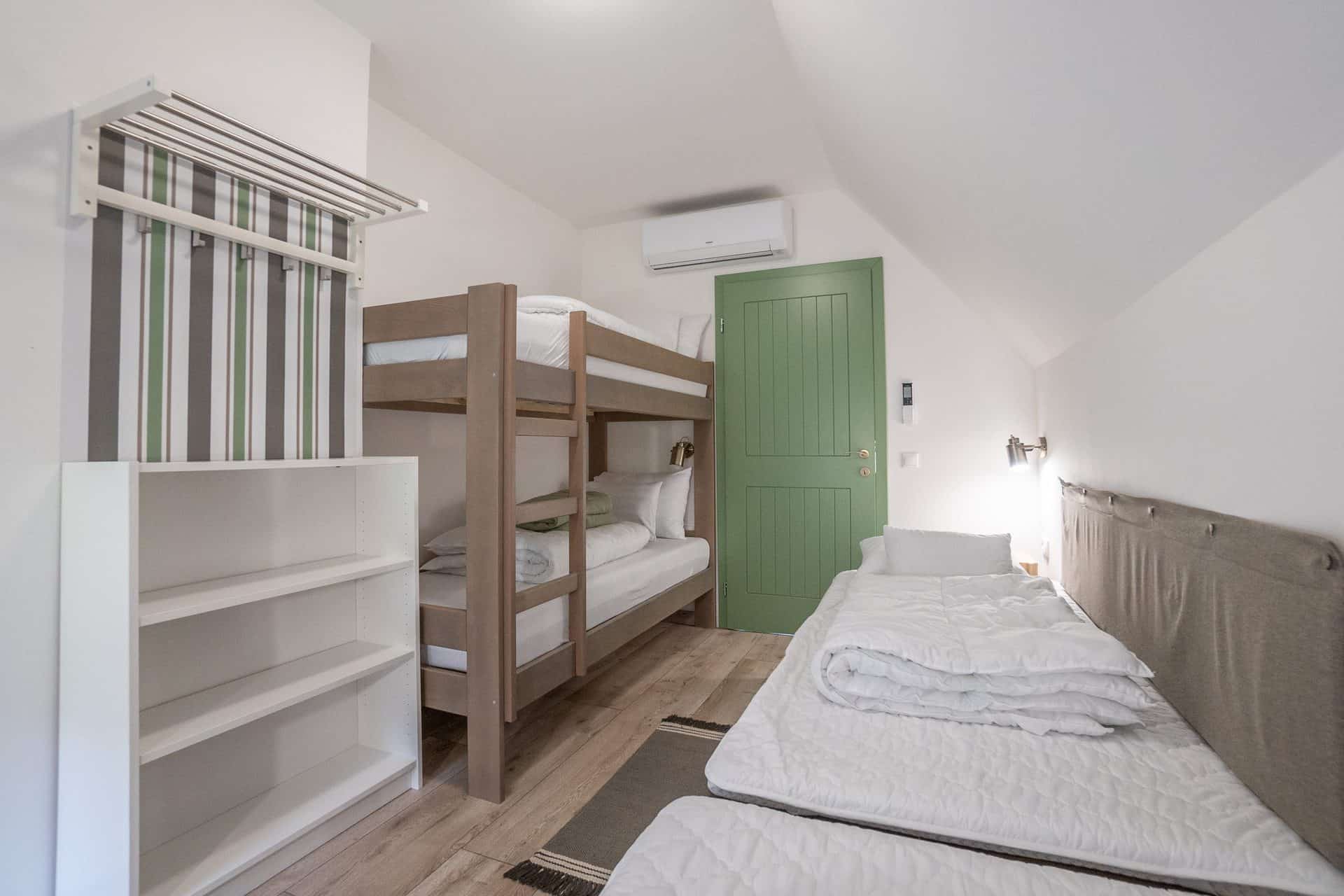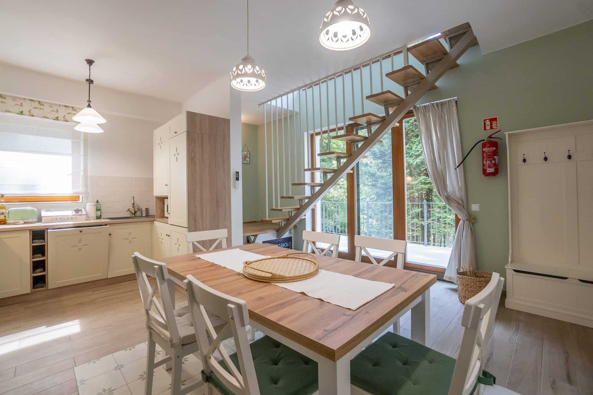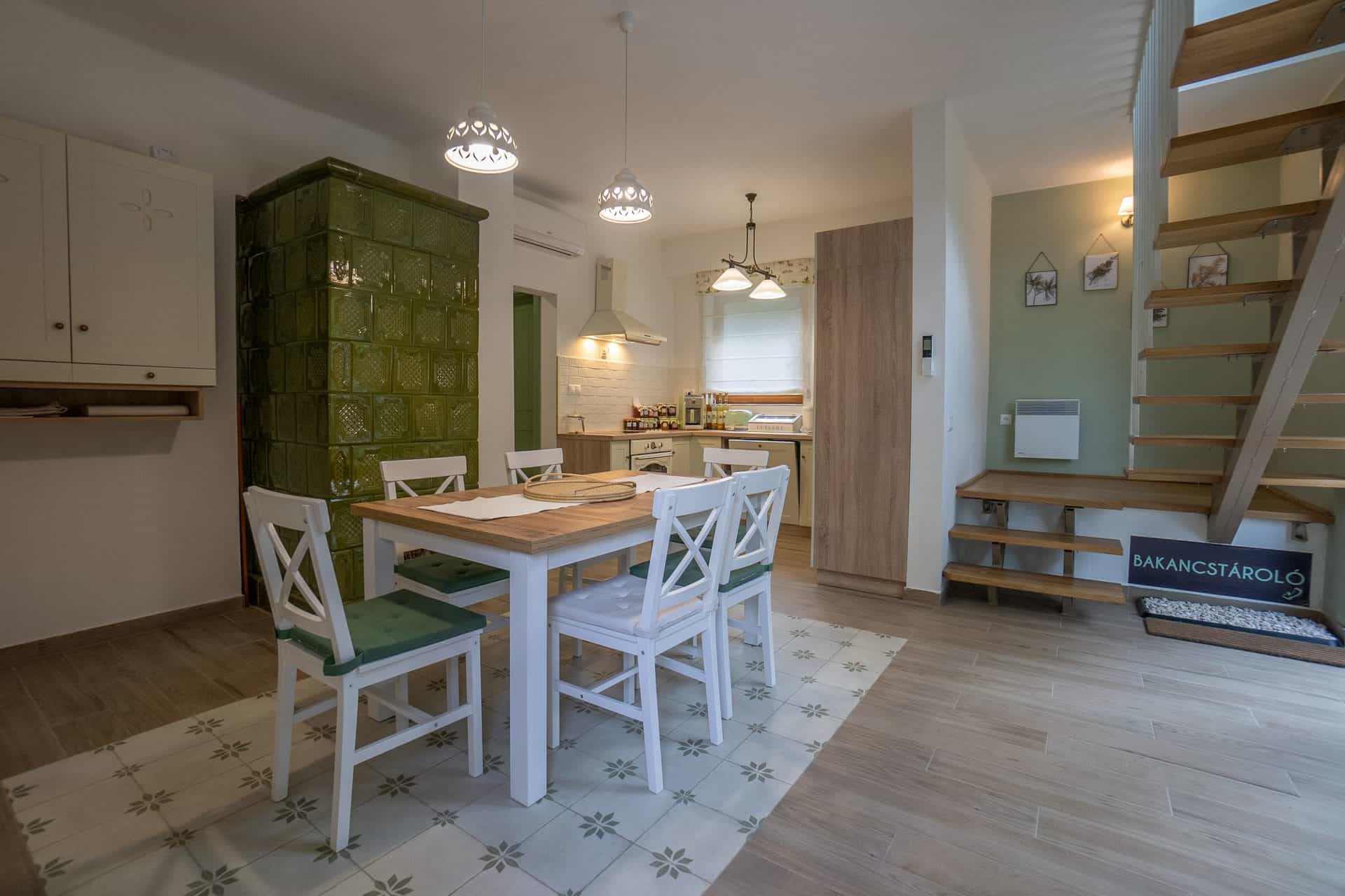 Szobák saját fürdőszobával, alagsorban társalgó, darts és csocsó