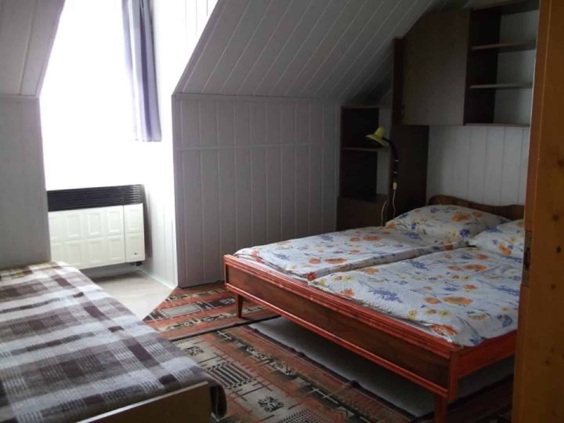 Összkomfortos külön bejáratú, önálló lakásként biztosít pihenést vendégeinknek egész évben. Alapterülete 96 m2, melyen 1-1 db 3, 4 és 5 ágyas fűthető hálószoba található.