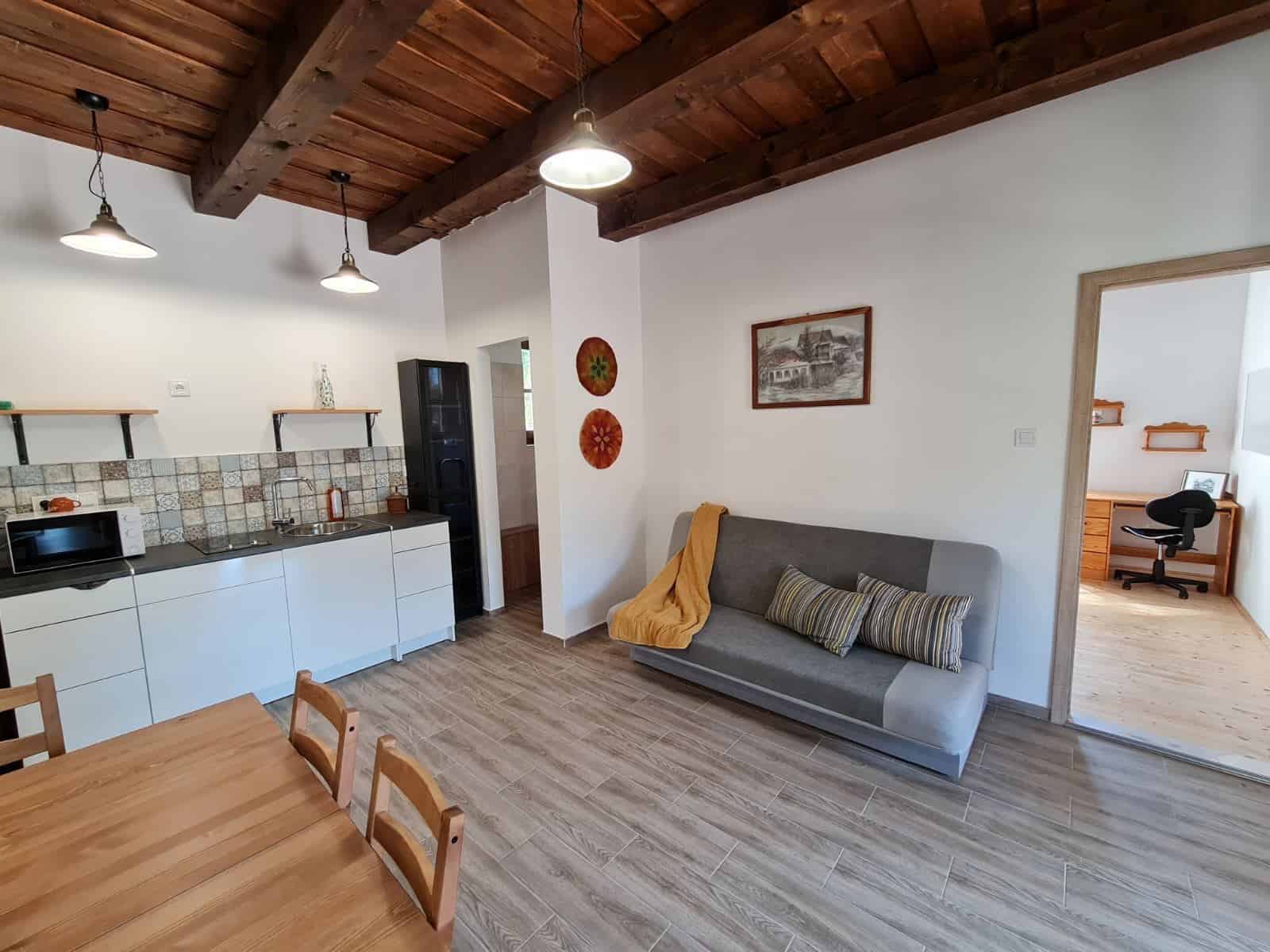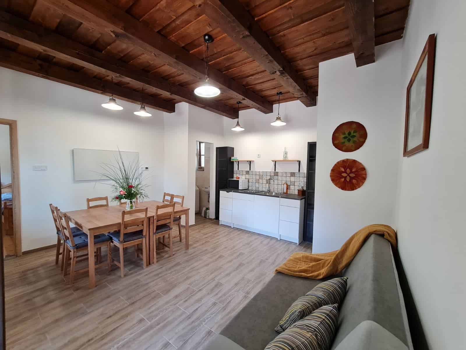4 szoba összesen 14 fő részére, fűtés infrapanelekkel,  csoportos étkezési lehetőség teljes ellátással, rendezvényterem, mosókonyha, SZÉP kártya elfogadóhely