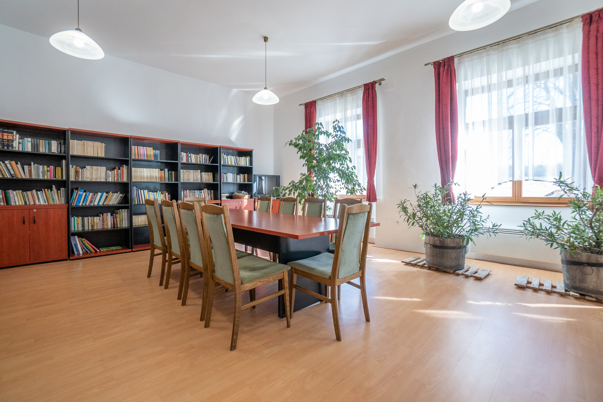 Vöröstó község központi költségvetési támogatással kialakított egy zarándokszállást, amely a polgármesteri hivatal alagsorában illetve a nagyteremben, a meglévő helyiségek felújításával került kialakításra. A szálláshely az alagsorban rendelkezik női és férfi vizesblokkal, tágas konyhával és étkező résszel, valamint a csomagok elhelyezésére szolgáló helyiségekkel. A polgármesteri hivatal kertjében kialakított fedett pihenő rész és étkező kitűnő lehetőség a szabad levegős időtöltésre. A zarándokok elszállásolása a nagyterem fapadlóján történik, kényelmes, mobil matracok lerakásával, amelyek rugalmasan alakíthatóak a zarándokok számától függően. A polgármesteri hivatalban található felújított mosdók és még egy konyha áll a zarándoklaton résztvevők rendelkezésére. A zarándokszállást a Vöröstóért Közalapítvány üzemelteti. A faluház tetején már üzemel az a napelempark, amely a meleg vizet és az áramot biztosítja majd a vendégeknek.