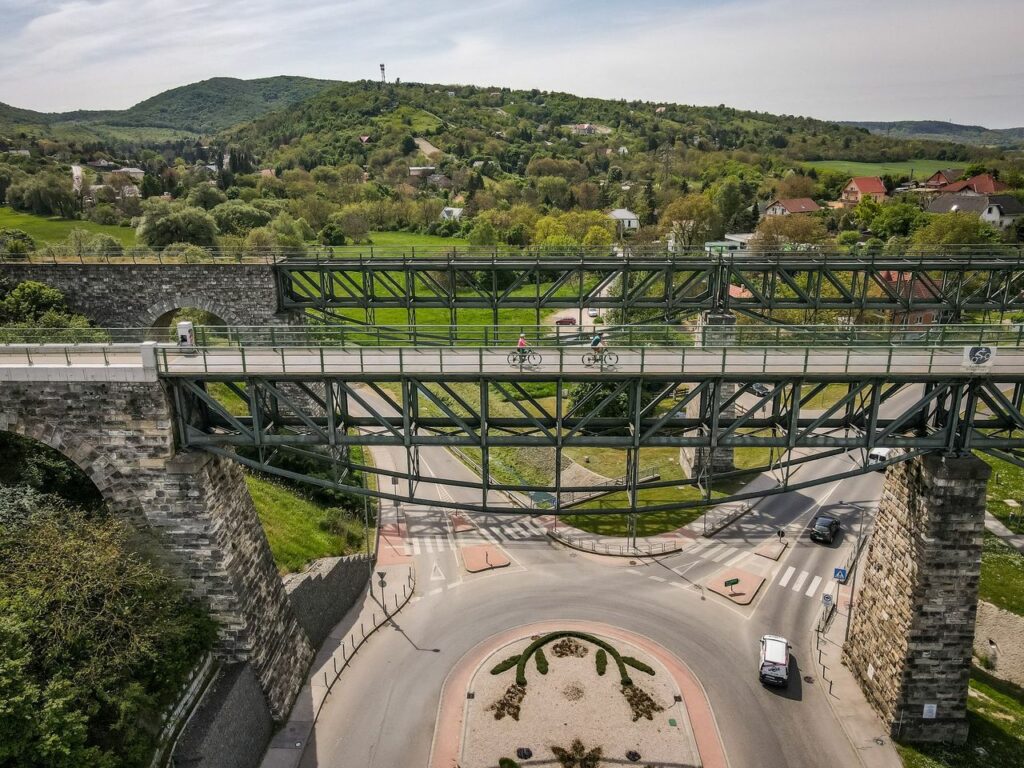 A túra Budapest egyik központi helyéről, a Szent Gellért térről indul, ahonnan kényelmes kerékpársávon gurulhatsz el a Feneketlen-tó mellett, egészen a Bikás parkig. Amint eléred a Budaörsi Kamaraerdőt, magad mögött hagyhatod a városi forgatagot. Ha a tekerést feldobnád egy kis interaktív kincskereséssel, a Digitális Vándor appon Piszke és Csatang kísér el utadon, hogy még többet megtudj a látnivalókról. Két autópálya fölött áttekerve érkezel meg az útvonal első látványosságáig, a biatorbágyi viaduktig. Miután a magasból megcsodáltad a völgyhidat, a szőlőhegyek ölelte etyeki borospincék felé folytatod utad. Ha nem sietsz, mindenképp iktass be egy pincelátogatást Budapest szőlőskertjében! Mielőtt beérnél Gyúróra, megpihenhetsz egy bringás pihenőhelyen, majd irány Tordas, ahol igazi vadnyugati élményben lehet részed, ha egy pár száz méteres kitérővel ellátogatsz az Élményfaluba. Tordas után már csak Martonvásár büszkesége, a gyönyörű Brunszvik-kastély vár rád, mielőtt élményekkel telve vonatra pattansz a főváros felé.